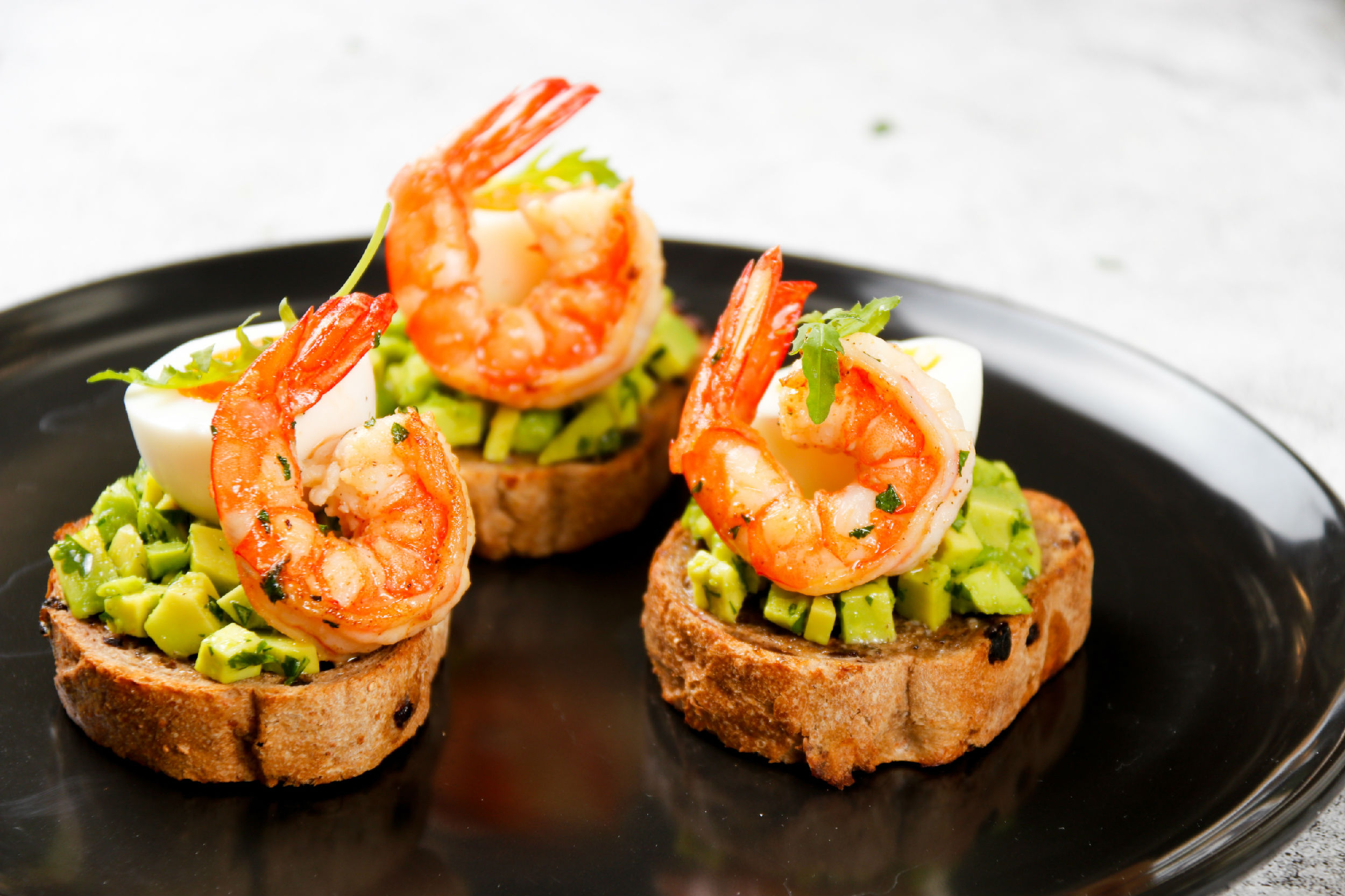 搭配(pèi)煎過的大(dà)蝦(xiā)、清新絲滑的牛油果